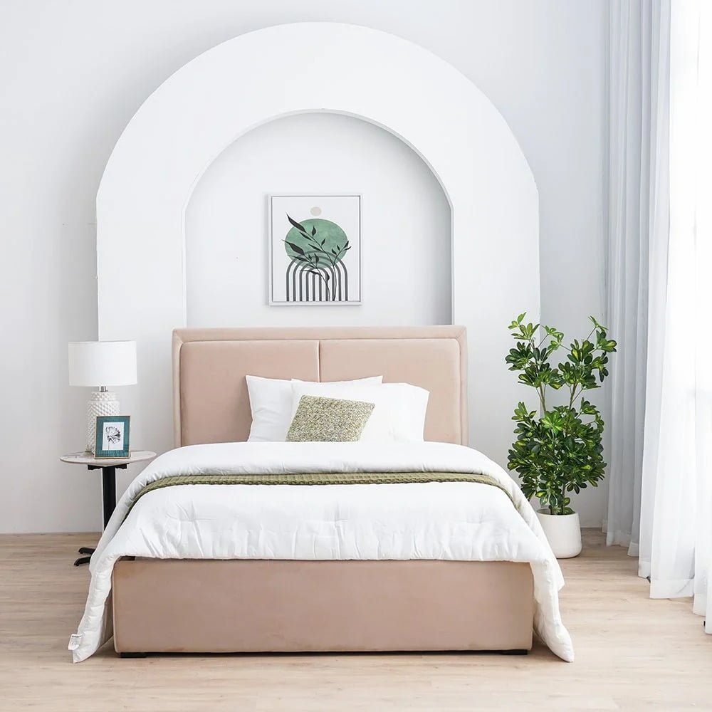 Experience the opulent comfort of Essential Oasis Bed, where every night feels like a warm embrace, ensuring tranquil and rejuvenating sleep. Elevate your bedroom decor with its elegant design, adding a touch of sophistication to any bedroom space