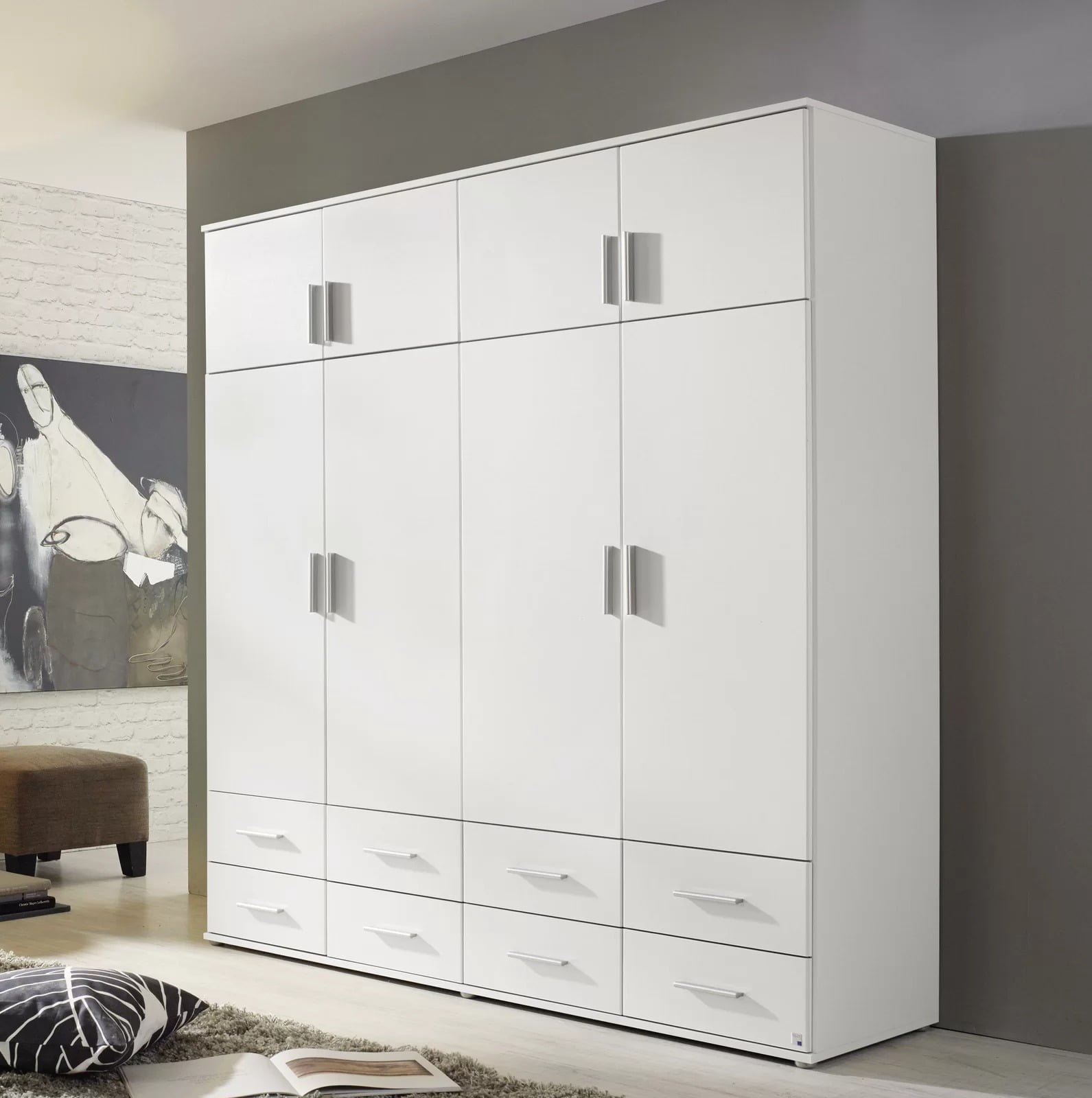 Introducing the Yamina 4 Doors Wardrobe your stylish storage solution Our wardrobes are designed to seamlessly blend into your space while offering ample room for your clothes and belongings with 4 Doors And 8 Drawer. Choose from a variety of modern designs and finishes to personalize your bedroom. Quality craftsmanship ensures durability, making this wardrobe a practical and elegant addition to your home.